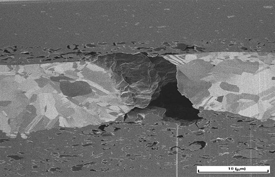 聚焦離子束技術(shù)(Focused Ion beam,F(xiàn)IB)是利用電透鏡將離子束聚焦成非常小尺寸的離子束轟擊材料表面,實(shí)現(xiàn)材料的剝離、沉積、注入、切割和改性。隨著納米科技的發(fā)展,納米尺度制造業(yè)發(fā)展迅速,而納米加工就是納米制造業(yè)的核心部分,納米加工的代表性方法就是聚焦離子束。近年來(lái)發(fā)展起來(lái)的聚焦離子束技術(shù)(FIB)利用高強(qiáng)度聚焦離子束對(duì)材料進(jìn)行納米加工,配合掃描電鏡(SEM)等高倍數(shù)電子顯微鏡實(shí)時(shí)觀察,成為了納米級(jí)分析、制造的主要方法。目前已廣泛應(yīng)用于半導(dǎo)體集成電路修改、離子注入、切割和故障分析等。